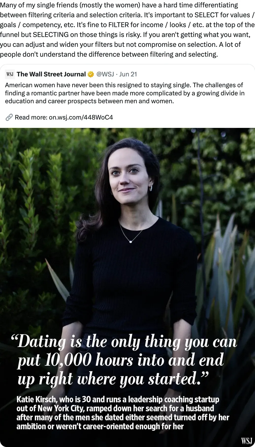 People treat these apps like it’s Instagram, they just don’t care about finding a life partner, they want the validation. Everyone knows they’re not going to find their life partner on there, yet still participate in these status games.